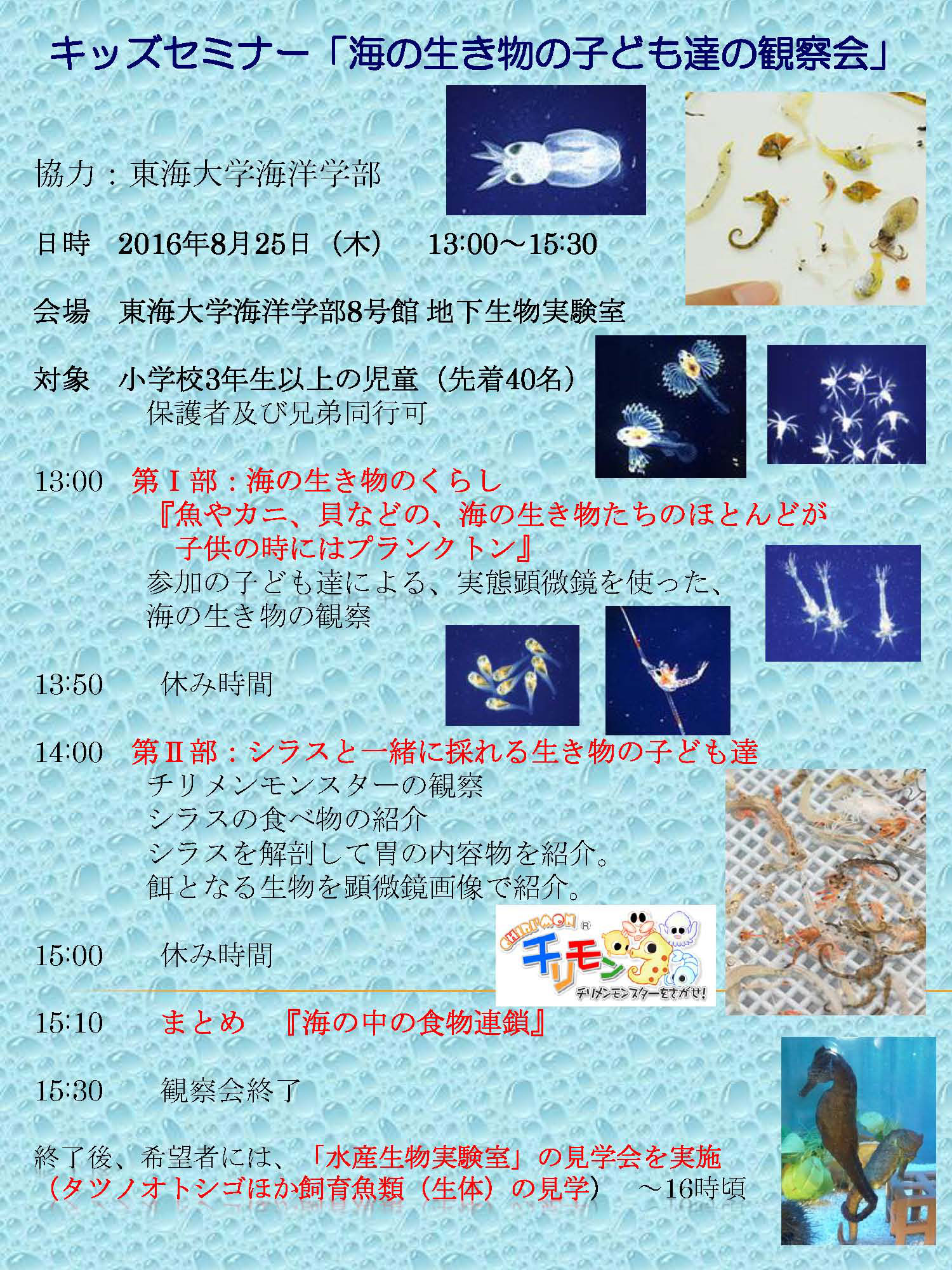 (1)キッズセミナー「海の生き物の子ども達の観察会」